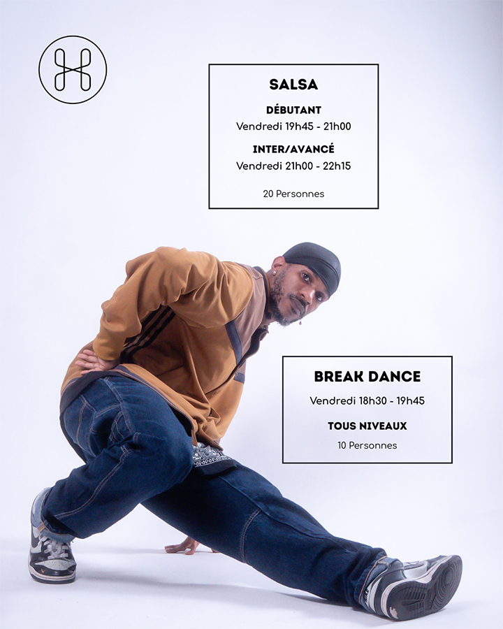 À la fois bboy et salsero, je suis connu pour mon côté atypique tant dans mon style que dans ma pédagogie. Mon humour associé à un grand sens de la rigueur pour tout ce qui touche à l’apprentissage sont ma marque de fabrique.
